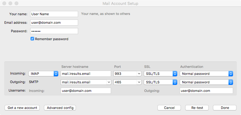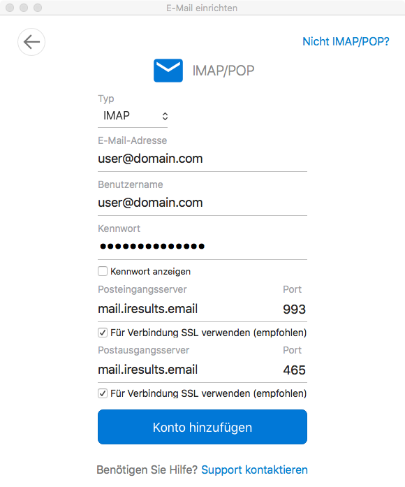 Benutzername: user@domain.com (gesamte E-Mailadresse)